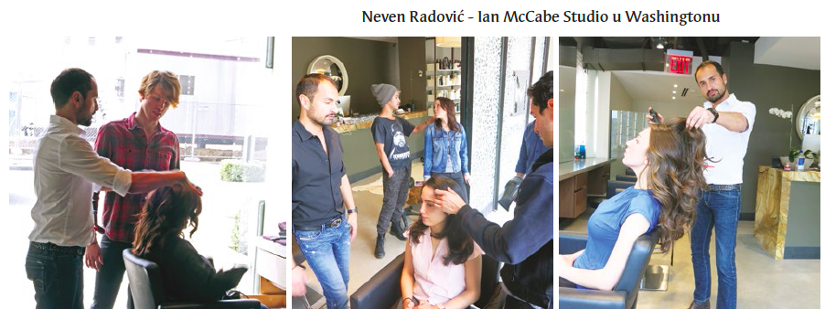 U Ameriku sam došao početkom 2008. godine s turističkom vizom. Planirao sam ostati, ali samo ako uspijem dobiti papire te pronaći dobar i zanimljiv posao. Amerikanci kažu: luck favors the brave (sreća prati hrabre), a tako je bilo i u mom slučaju. Došao sam u kontakt s ljudima koji su bili povezani sa slavnim frizerom iz New Yorka Tedom Gibsonom te su otvarali novi salon s njegovim imenom na jednoj od najprestiž- nijih lokacija u Washingtonu. Nakon nekoliko intervjua odlučili su me zaposliti i pomoći mi oko dobivanja papira i vize. Salon je kasnije prekinuo suradnju s Tedom Gibsonom, dobio je novo ime Nival, a ja sam u njemu imao glavnu ulogu pri zapošljavanju i obuci novih zaposlenika. Krajem 2013. godine kolega Ian McCabe i ja dobili smo investicijsku ponudu jedne naše klijentice koja nam je pomogla otvoriti salon u Ritz Carlton ho- telu u centru Washingtona. Salon je otvoren 1. 6. 2014. godine nakon više od godine dana napor- nog rada i priprema. Salon se zove Ian McCabe Studio jer kolega ima veći udio u partnerstvu. Nakon što ja dobijem dozvolu za stalni boravak, nadamo se otvaranju novih salona i proširivanju posla. Trenutno u salonu zapošljavamo 3 tehni- čara za boje, 3 stilista i 3 asistenata, a i troje ljudi radi na recepciji.