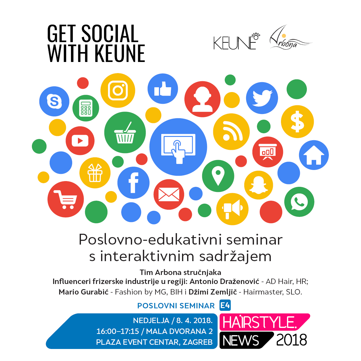 Keune i digitalna agencija Arbona udružuju snage i donose vam savjete za izgradnju kvalitetnog poslovanja u online svijetu. Kako pojačati prisutnost? Kako stvoriti jedinstven jezik komunikacije? Koje su odlike kojima se garantira vidljivost te kako istaknuti svoj posao, samo su neka od pitanja na koja ćete pronaći odgovore prisustvovanjem na edukativnom Get social with Keune.